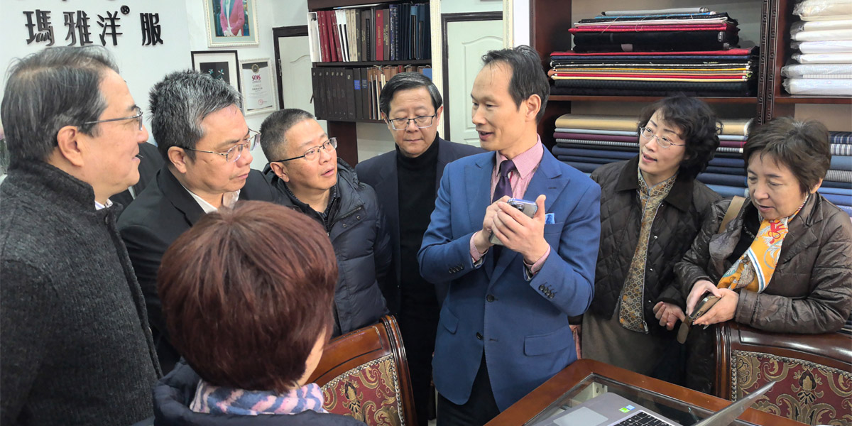 上海市政协副主席肖贵玉、市政协常委严旭委员意向到上海洋服调研